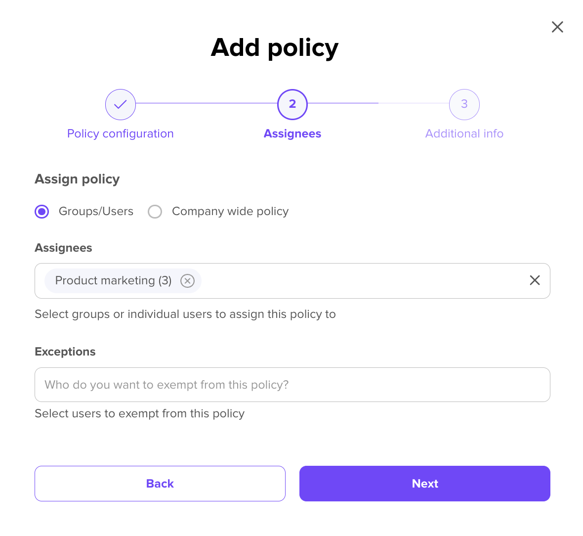 - Applica politiche a gruppi di utenti (ad es. dipartimenti o team).