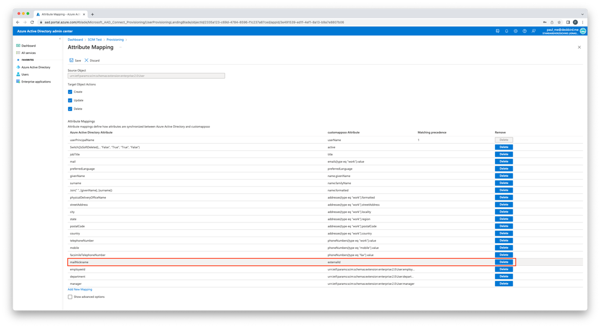 - Scorri fino in fondo alla pagina e elimina l'attributo mailNickname
