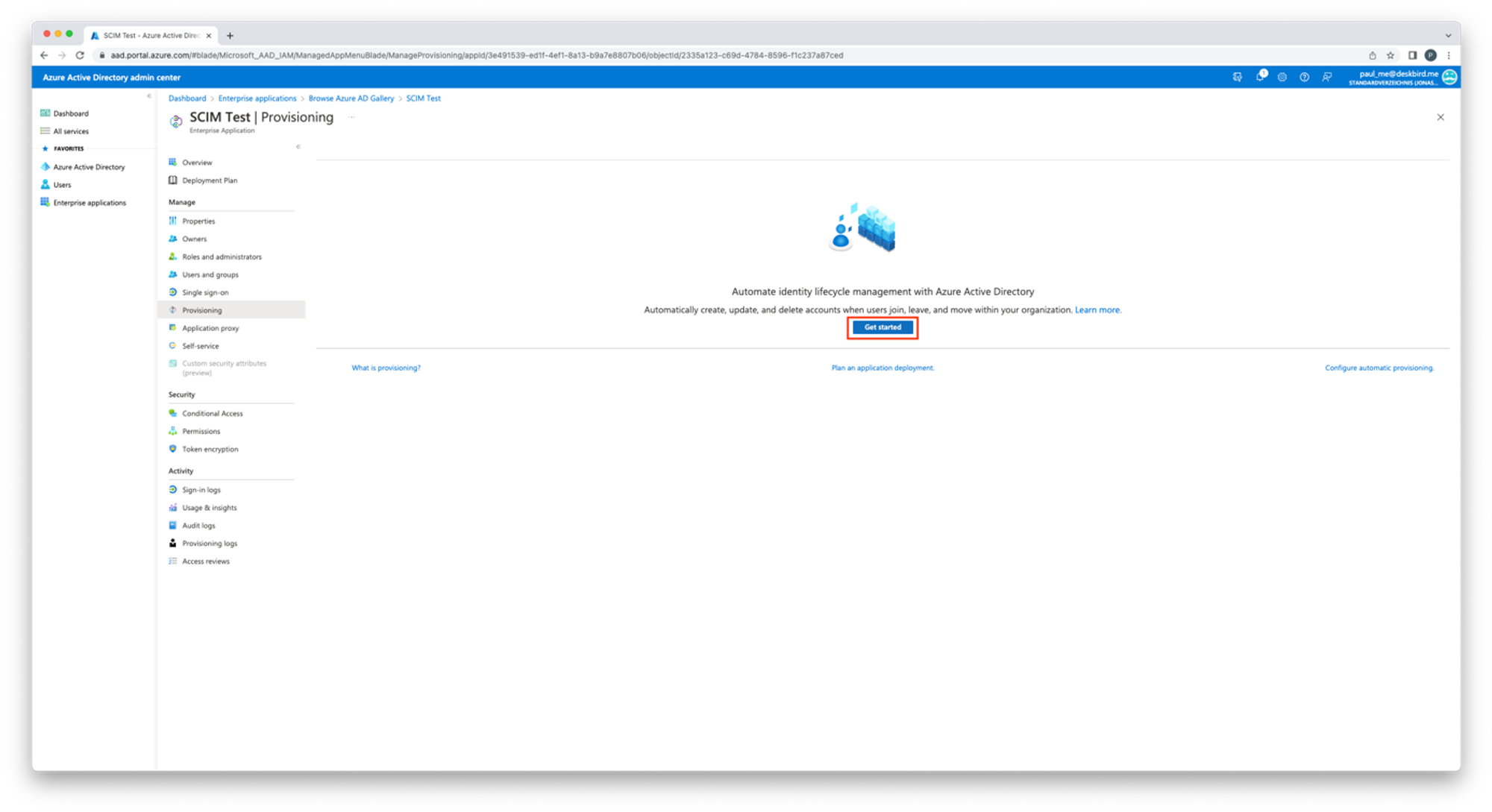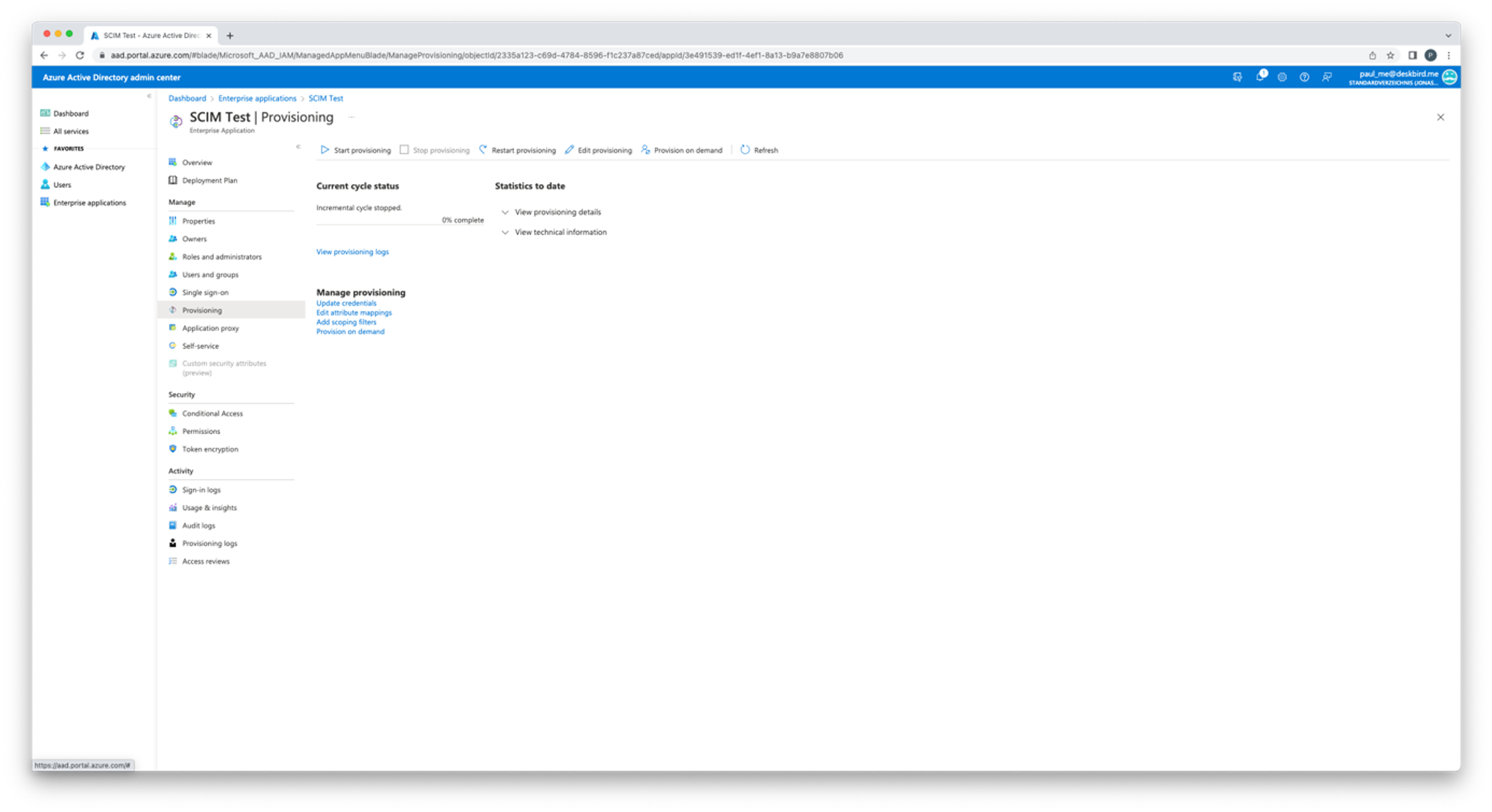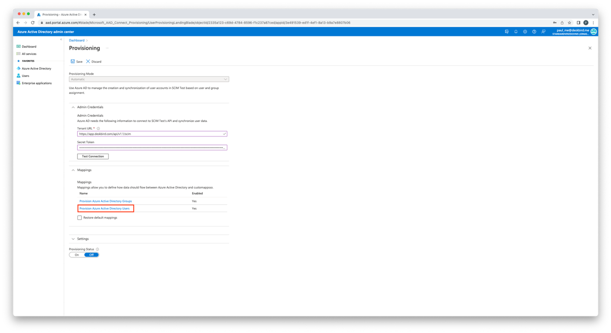 - Vai alla tua applicazione SCIM e clicca su Provisioning