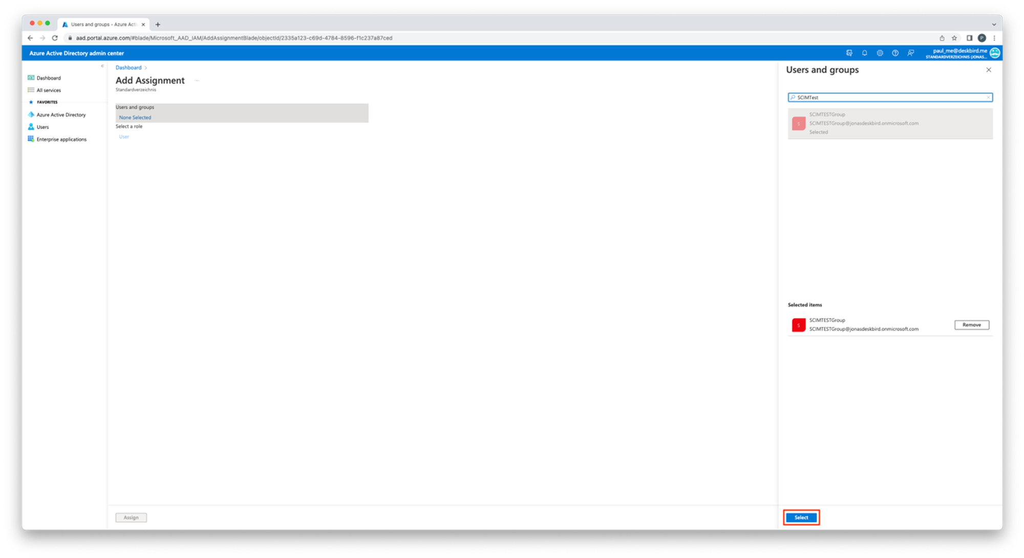 - ❌ urn:ietf:params:scim:schemas:core:2.0:Group non è selezionato