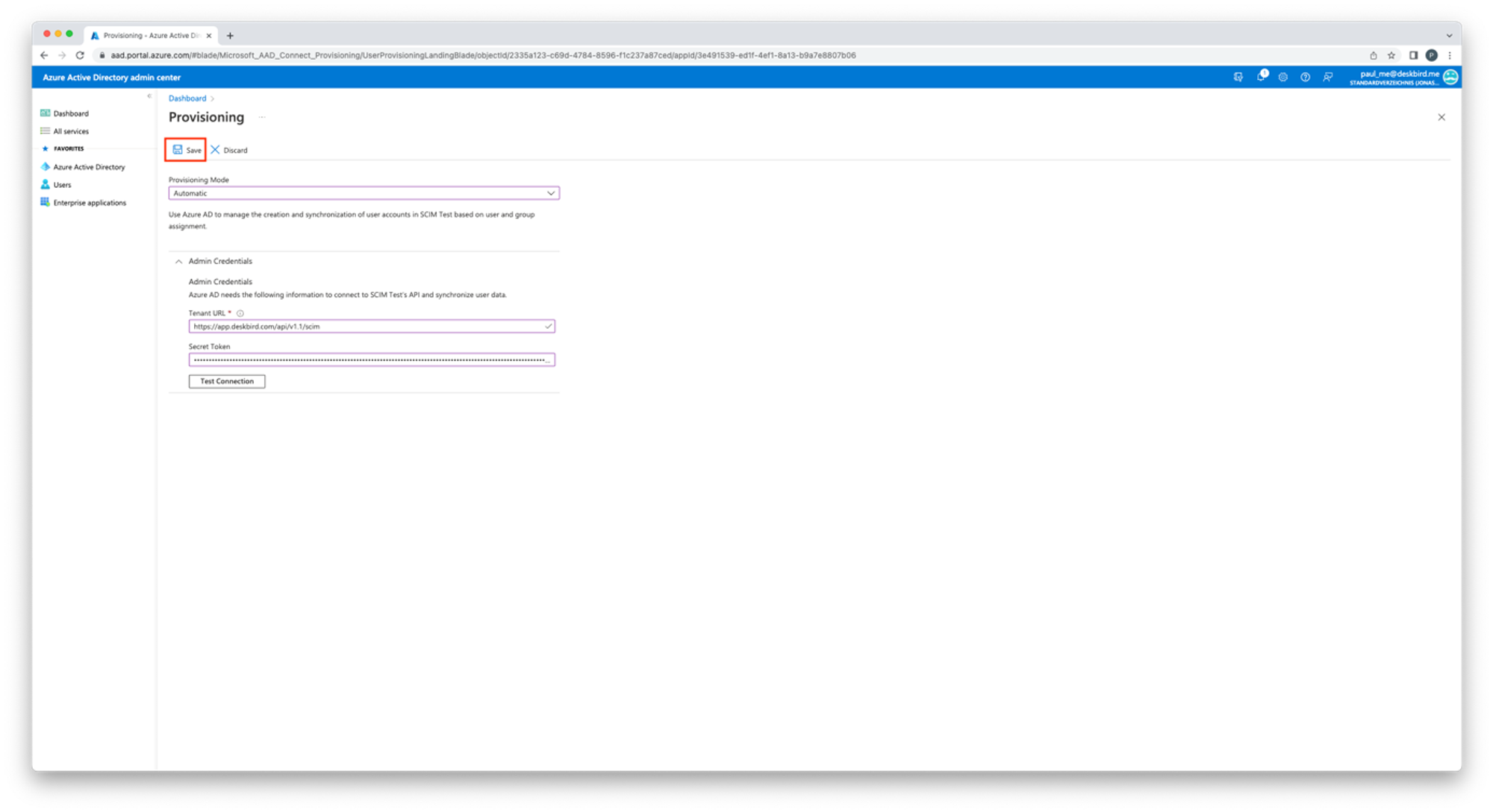 - Crea il token SCIM in deskbird