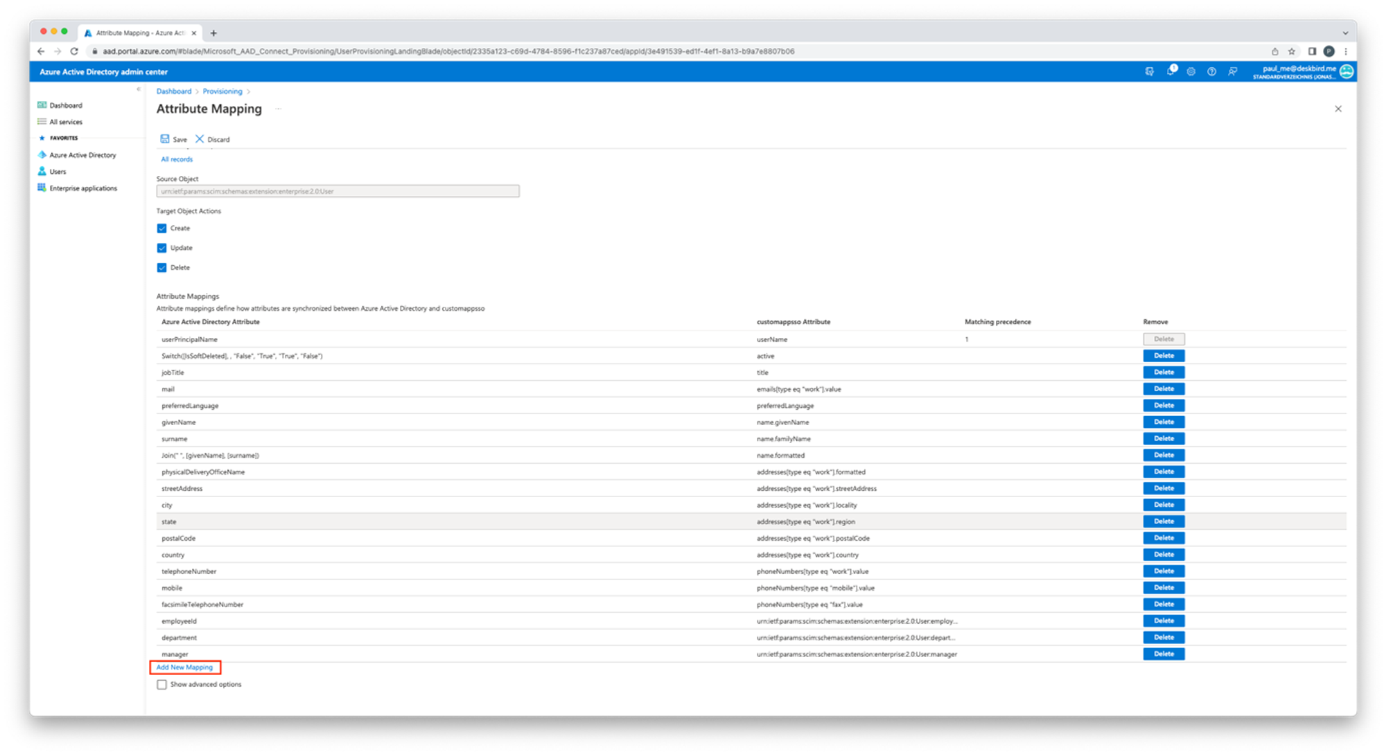 - Clicca su Provision Microsoft Entra ID Users sotto Mappature