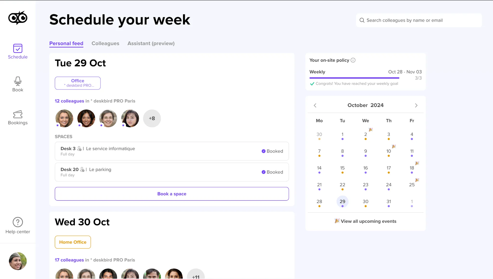 Werknemers kunnen hun nalevingsstatus op elk moment bekijken via de deskbird-feed (web of mobiel).
